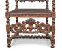 Antique 18th Century Jacobean Baroque Carved Walnut Arm Chair With Caned Seat & Back and Barley Twist Turnings