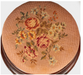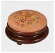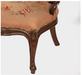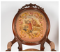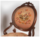 Antique His & Hers Pair Carved Walnut Victorian Style Parlor Chairs Early 20th Century with footstool and original needlepoint and petit point beige upholstery. The round foot stool retains the original Vander Ley Brothers Inc. label underside dating these chairs to the 1920's - 1930's.