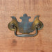 19th Century New England Pine Chest of Drawers. Backsplash; four graduated drawers with brass bat pulls. {Approximate dimensions: 42 high x 37 1/2 wide x 19 1/2 inches deep.}. Condition: Surface wear throughout includes minor chipping to edges. Later pulls apparent.