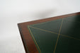 Late 20th Century Walnut Spanish Colonial Revival Library Table w/ Green Inset Leather Top Over 3 Drawers and am Iron Stretcher Bar. Dimensions 53-1/2" wide x 30" deep x 30-1/2" high.
