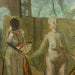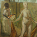 Frank Watkins (American, Born 1894; Died 1972) "Female Nude With Handmaiden and Dog" Oil on Canvas. Numerous auction tags on