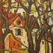 Sacha Moldovan Village Scene Post Impressionist Oil on Canvas Painting presented in original artist's frame. Circa 1950's