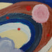 Anatoly Andreevich Passan - Sapkov (1920 - 1980) Soviet Era Russian Artist - Fantasy Solar System Oil on Canvas Painting. Printed tag on side of the painting reads, in Russian, The State Tretyakov Gallery which is in Moscow. Signed and date 1957 lower left. Unframed. Note: a major exhibition was held at the State Tretyakov Gallery in 1957 to mark it's centennial - this painting very possibly was presented during this exhibition.