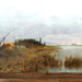 Antique French School Normandy Marsh Landscape Late 19th Century Oil on Canvas Painting. Unsigned. Relined and Restored. Presented in a period hand carved, gessoes and patinated wood frame.