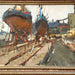 AW943: European Ships in Drydock Expressionist Oil on Canvas Painting Dated 1962