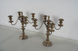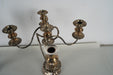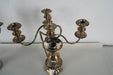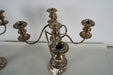 Pair of Late 19t C Sheffield Silver-Plate 5 Light Candleabra - each with unidentified maker's mark, further marked "England"; each with removable central finial; weighted; 15 inches diameter;16 inches high